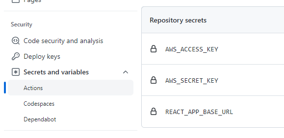 GitHup에 기능구현한 파일을 merge하면 우리가 사용하고 있는 AWS의 S3에 자동으로 정적 배포가 되게 해놓았다. 그런데 배포된 서버의 주소를 하드 코딩하지 않고 .env 파일을 만들어 환경변수 설정을 하고 사용한다. 하지만 github에 push할 때는 .env파일이 포함되지 않는다. 즉, 환경변수의 값이 undefined가 되어 서버와 통신할 수 없게 된다. 전에 자동배포를 하면서 만든 client.yml을 수정해서 merge를 하게 되면 github action에서 미리 등록해둔 서버 url을 사용해 .env.production.local 파일을 만들고 환경변수를 설정하고 이 환경변수를 사용할 수 있게 하면 된다.