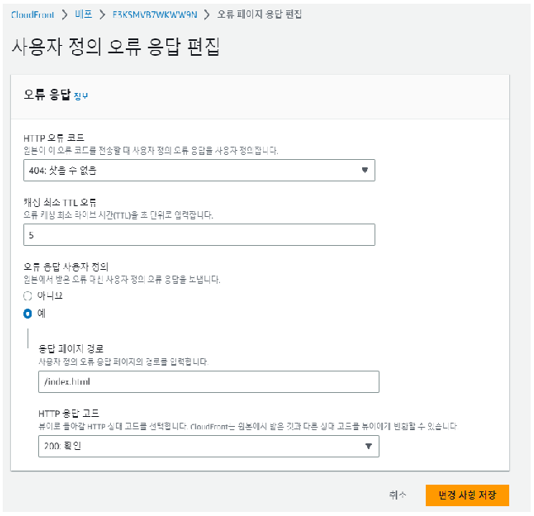 - Cloud Front를 사용하면 특정 에러 발생시 새로운 주소로 리다이렉션이 가능해진다.